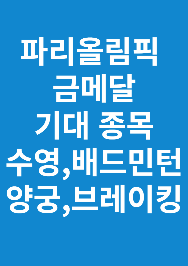 남자 수영에서는 김우민과 황선우 등 '황금세대'가 기대를 모으고 있고, 배드민턴에는 세계랭킹 1위의 안세영이 금메달을 준비하고 있으며 브레이킹 댄스에서는 김홍열이 첫 올림픽 메달리스트에 도전합니다. 그리고 여자 양궁 대표팀은 단체전 10회 연속 우승을 목표로 하고 있어 국민들의 기대를 한 몸에 받고 있습니다.